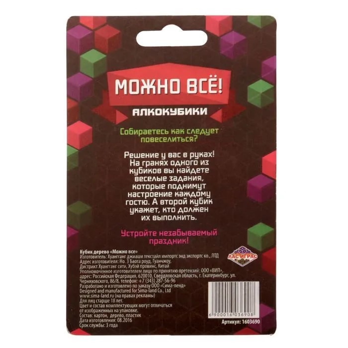 Купить кубик "можно все", алкокубики для принятия решений от 60 руб. с доставкой до пункта выдачи в Моздоке. Интернет магазин ДекаМаркет. Оплата при получении.